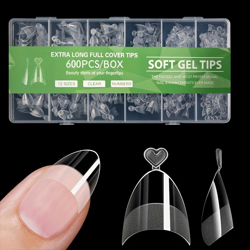 600 piezas de puntas de uñas cortas francesas: uñas postizas ovaladas cortas, 12 tamaños de puntas de uñas transparentes con caja, uñas postizas naturales de media cubierta, uñas postizas acrílicas adecuadas para salones de uñas y uso doméstico